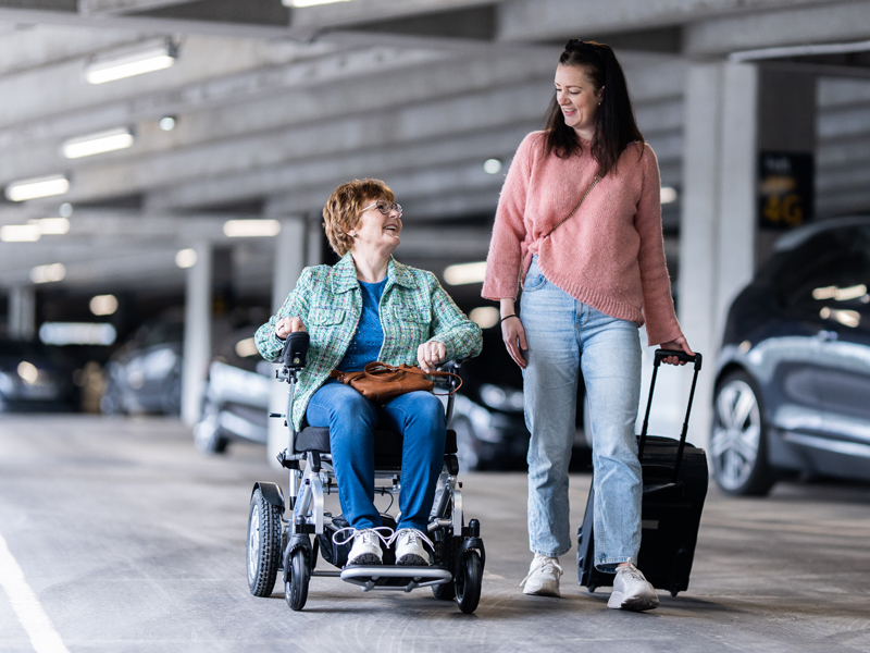 Hvort sem þú ætlar að ferðast með bíl, innrita þig í flug, taka leigubíl eða fara í strætó með vinum, þá getur Eloflex-stólinn þinn fylgt þér áreynslulaust. Þegar þú kemur á áfangastað geturðu notið frelsisins sem þar er að finna.