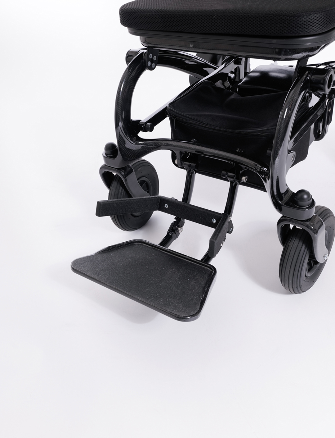 Koltrefjar eru þekktar fyrir ótrúlegt hlutfall styrks og þyngdar. Það er vinsælasta efnið við smíði á hjólum, bílum, bátum, flugvélum og í byggingarverkfræði. Hví ekki að nýta sér það við smíði rafmagnshjólastóla? Koltrefjagrindin er ekki bara ótrúlega létt. Hún tryggir mýkri og ánægjulegri akstursupplifun.
