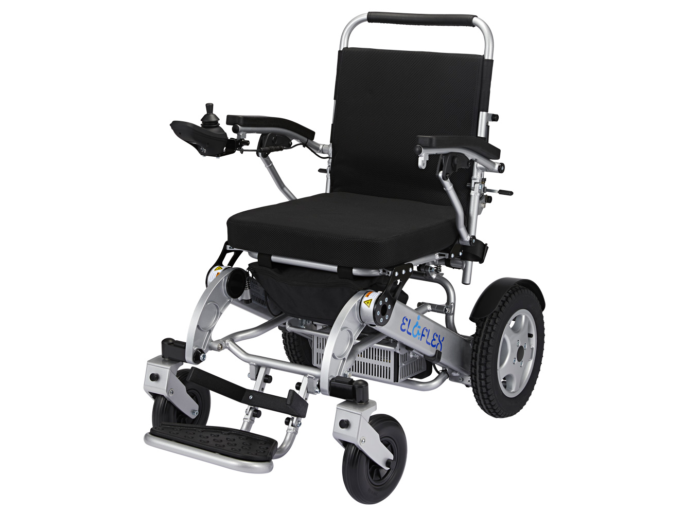 Eloflex D2 er nýstárlegur, samanfellanlegur rafmagnshjólastóll með snjöllu ívafi - hægt er að taka hann í sundur í tvo hluta. Þessir tveir hlutar veita 14 og 16 kg hleðsluþyngd, auðveldar flutning hans og að setja hann í skottið á bílnum þínum.