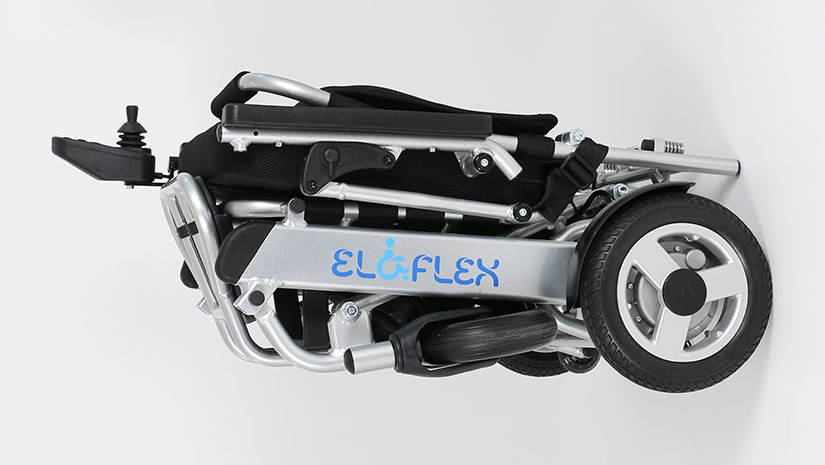 Eloflex L er fyrirferðarlítill og sveigjanlegur rafmagnshjólastóll fyrir fólk á ferðinni. Fella má hann saman auðveldlega á nokkrum sekúndum, sem gerir það auðvelt að taka hann með sér þegar þú ferðast í bíl eða flugvél.