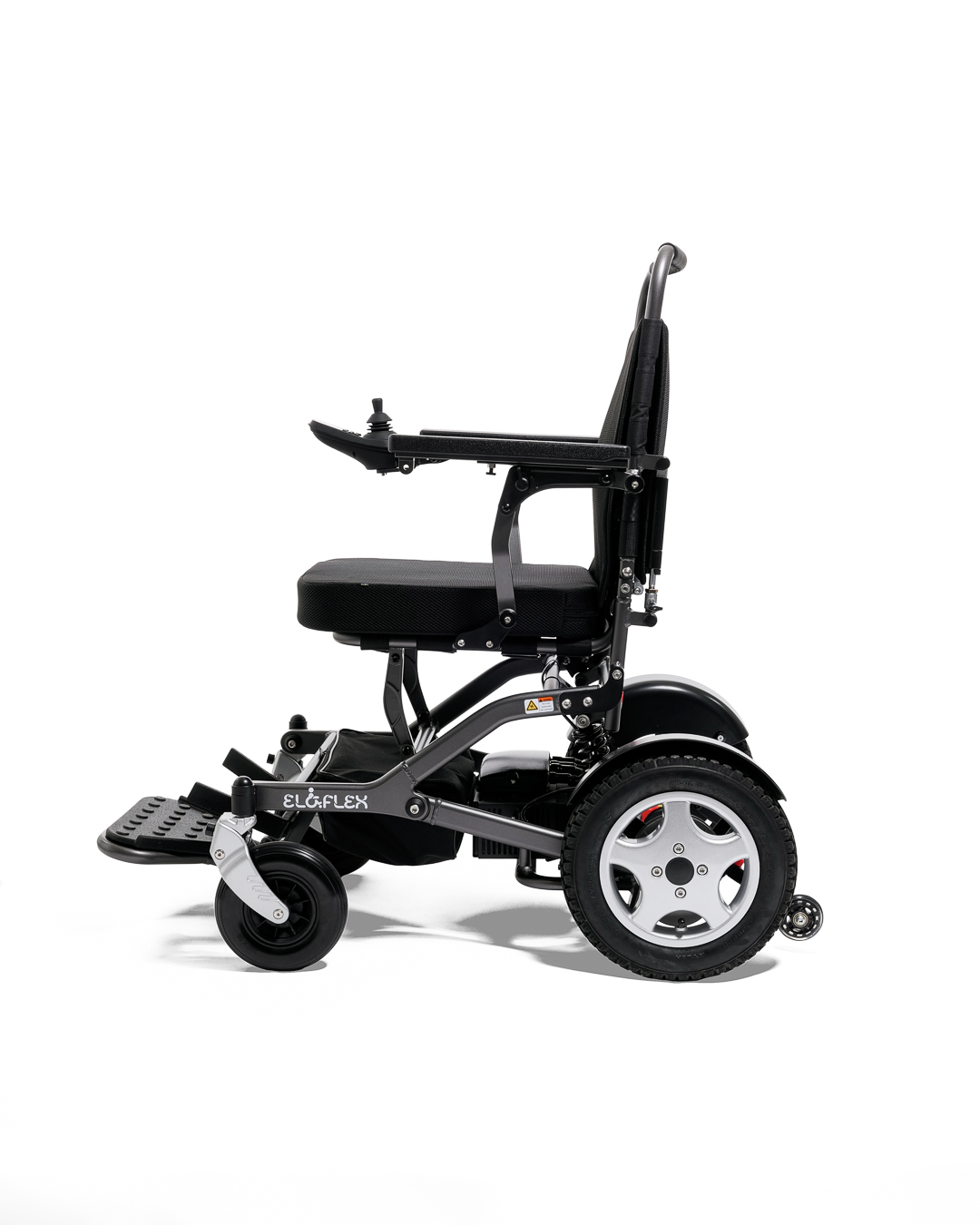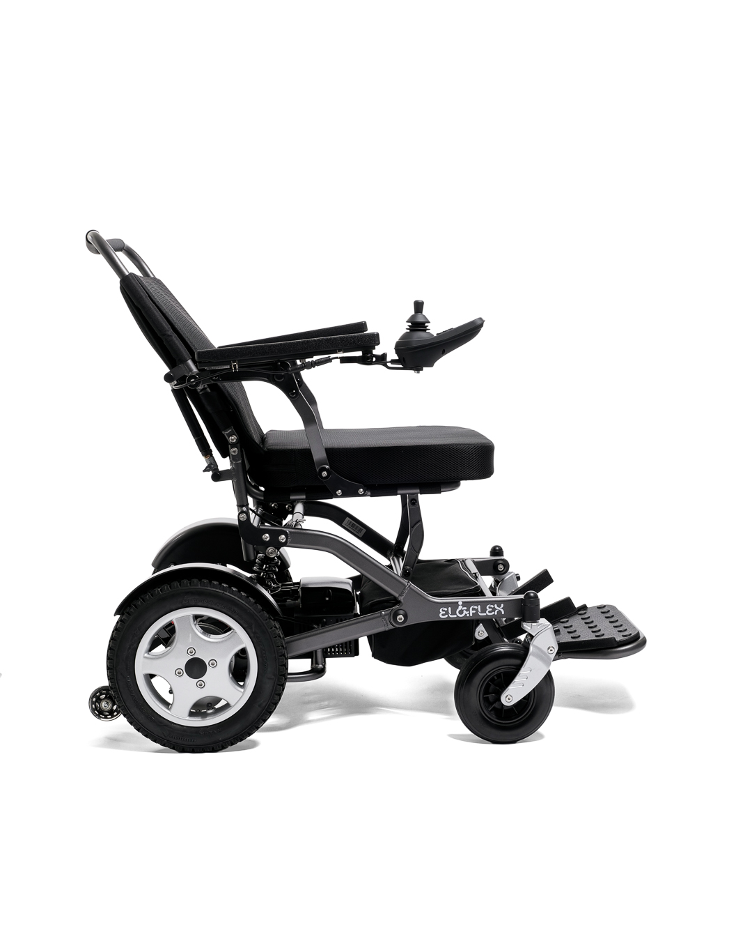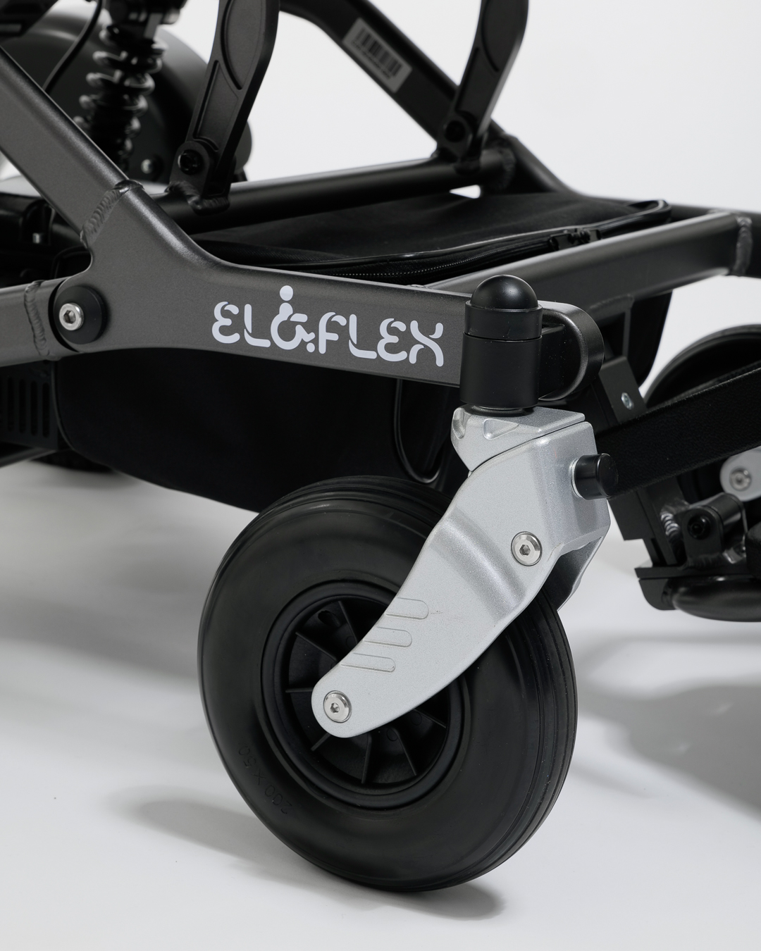 Eloflex Model R er hannað til að bjóða upp á yfirburðarmikinn þægindi, aðgengi og frammistöðu. Það býður upp á mjúka og ánægjulega ferðalýsingu með hjálp háþróaðrar fjöðrunar á bæði fram- og afturhjólin. Með stórum afturhjóli tryggir það framúrskarandi stjórnanleika á ýmsum yfirborðum og sameinar stöðugleika og þægindi. Hönnunin er ætlað að styðja allt að 160 kg, sem gerir það hentugt fyrir breitt svið notenda án þess að fórna virkni.