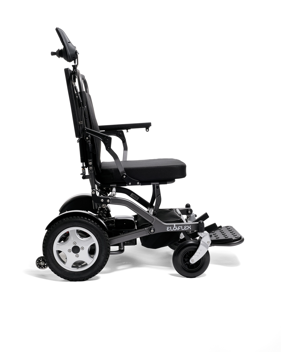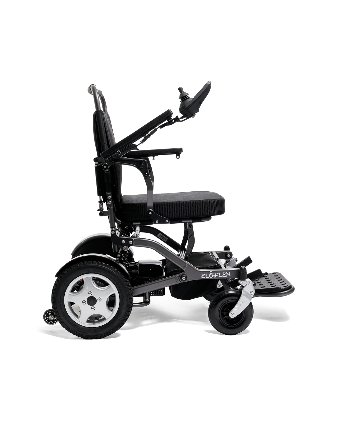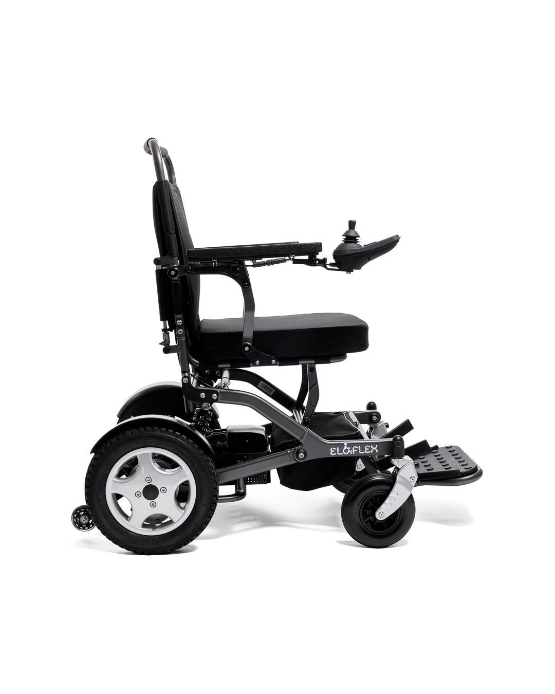 Eloflex Model R er hannað til að bjóða upp á yfirburðarmikinn þægindi, aðgengi og frammistöðu. Það býður upp á mjúka og ánægjulega ferðalýsingu með hjálp háþróaðrar fjöðrunar á bæði fram- og afturhjólin. Með stórum afturhjóli tryggir það framúrskarandi stjórnanleika á ýmsum yfirborðum og sameinar stöðugleika og þægindi. Hönnunin er ætlað að styðja allt að 160 kg, sem gerir það hentugt fyrir breitt svið notenda án þess að fórna virkni.