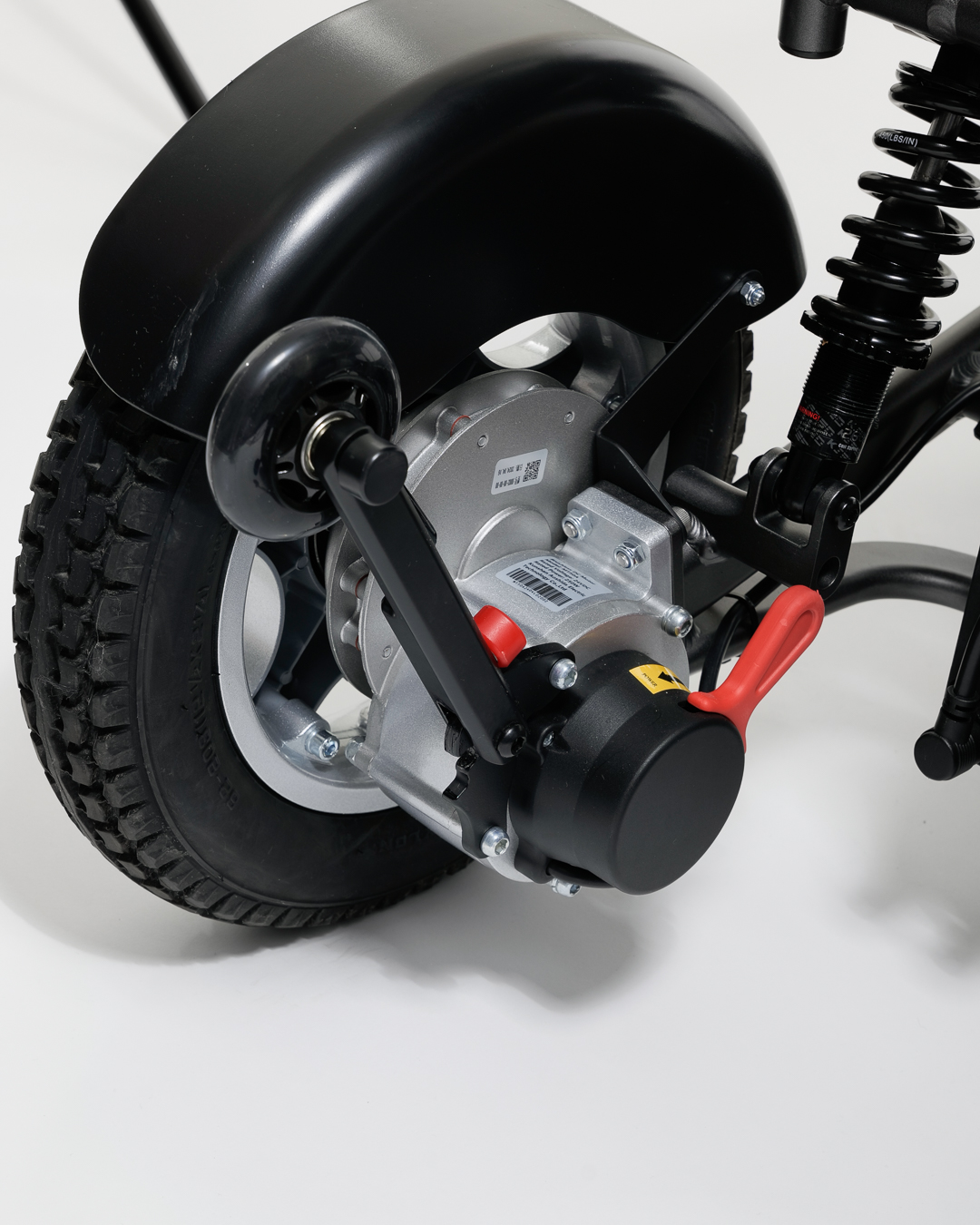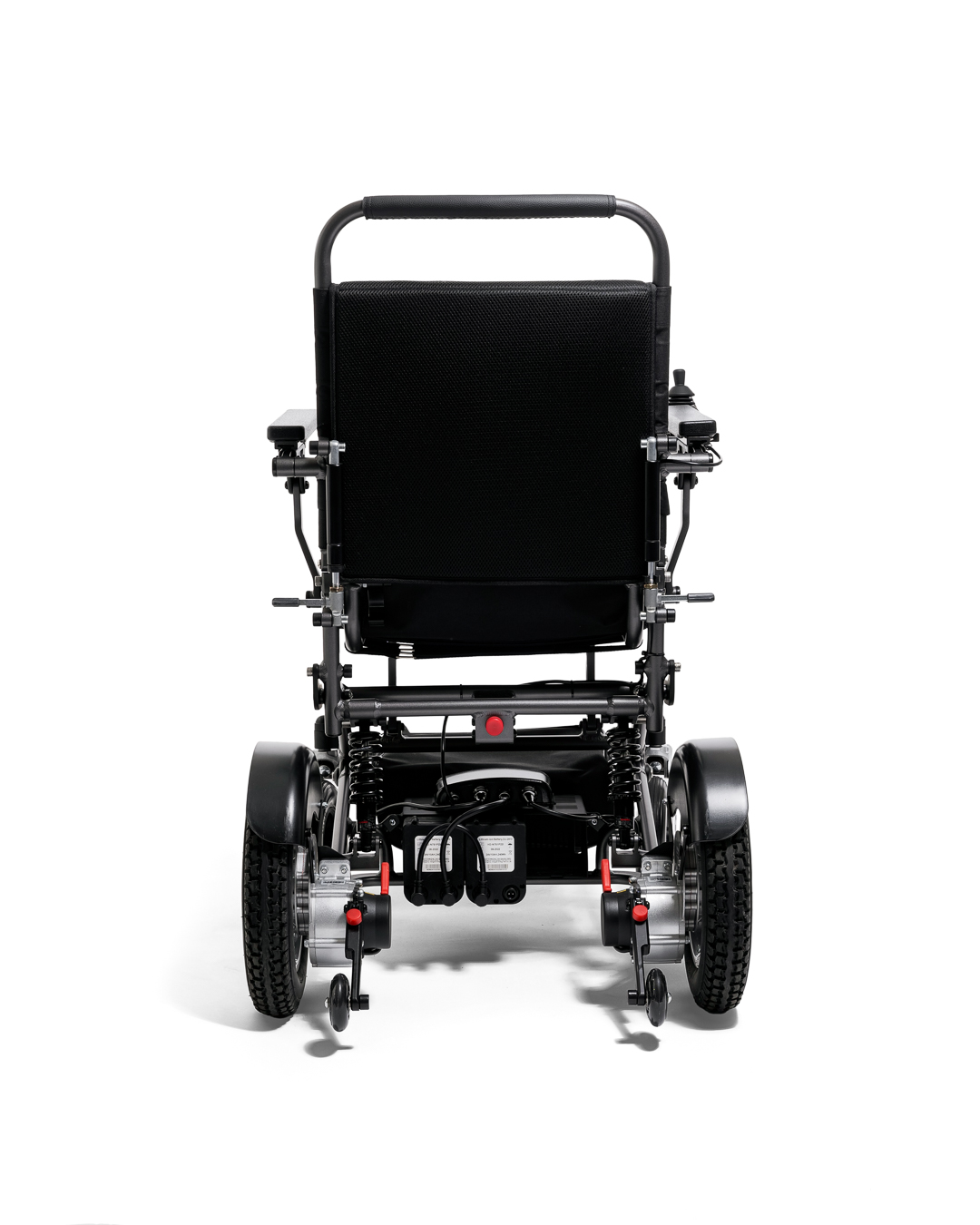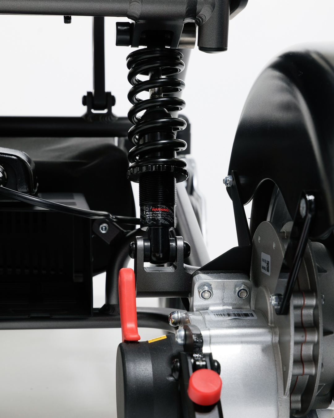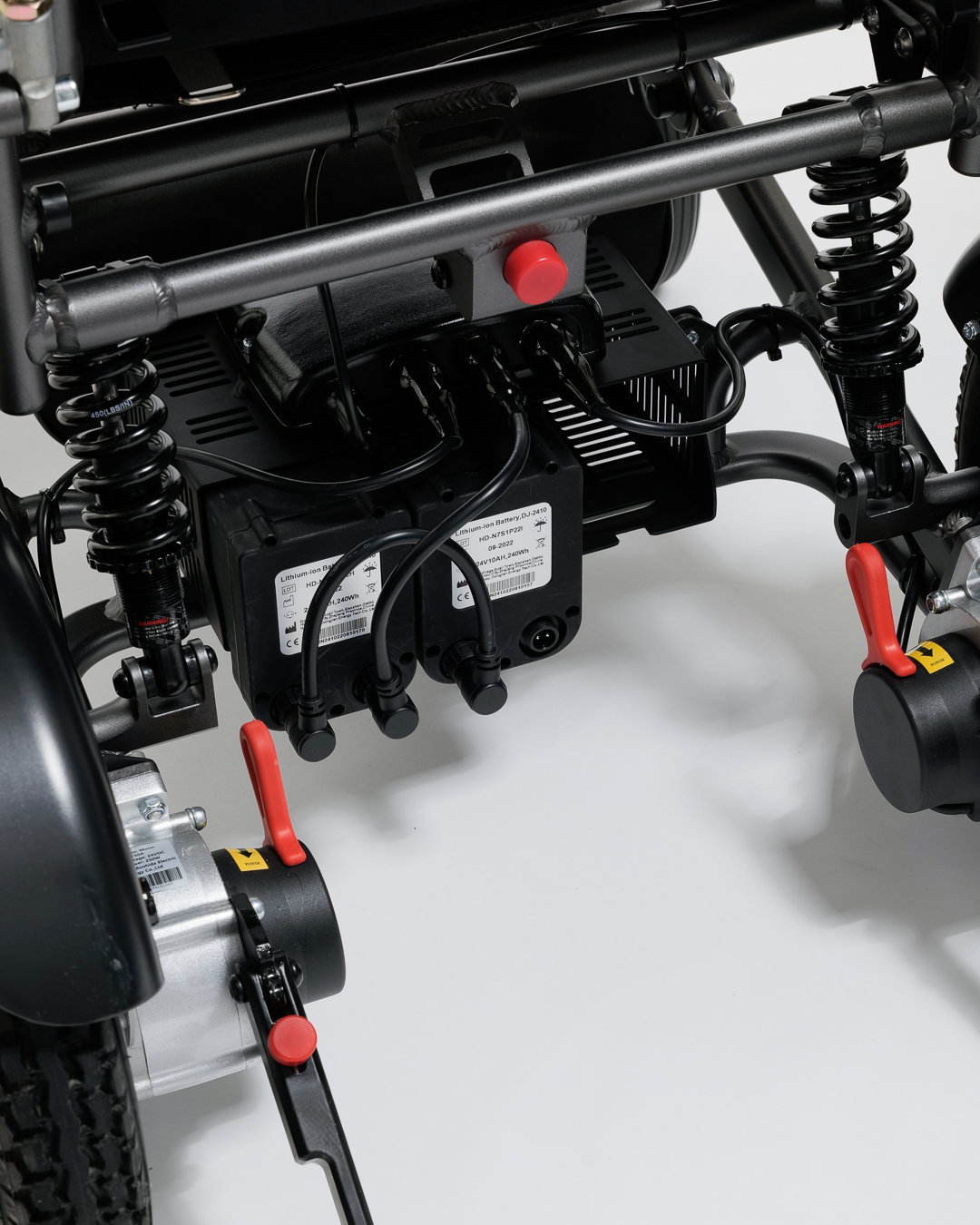 Með fjöðrun á öllum fjórum hjólum og skilvirkri dempun á afturhjólum tryggir þessi stóll mjúka og þægilega ferð. Akstursgæðin eru enn betri með sérhönnuðum stífum og traustum undirvagni.