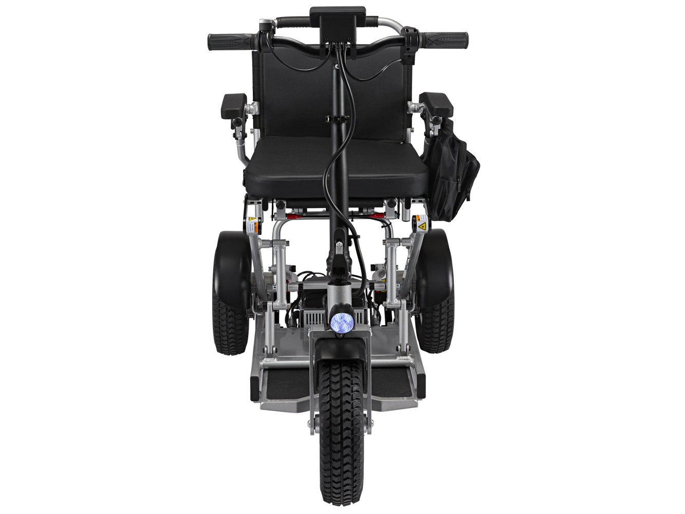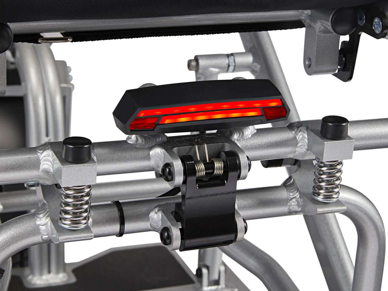 Líkt og rafmagnshjólastólarnir okkar er Eloflex S1 Hybrid-rafskutlan okkar samanfellanleg. Auðvelt er því að fella hana saman og taka hana með í ferðalög þín. Með því að ýta á hnapp geturðu valið lengd skutlunnar (105-120 cm) í samræmi við akstursumhverfið. Í lengri stöðu geturðu ekið hraðar með stöðugum og öruggum hætti, jafnvel á grófu undirlagi. Í styttri stöðu verður skutlan fyrirferðarminni svo auðveldara sé að aka henni í verslunum, á veitingastöðum og innandyra.